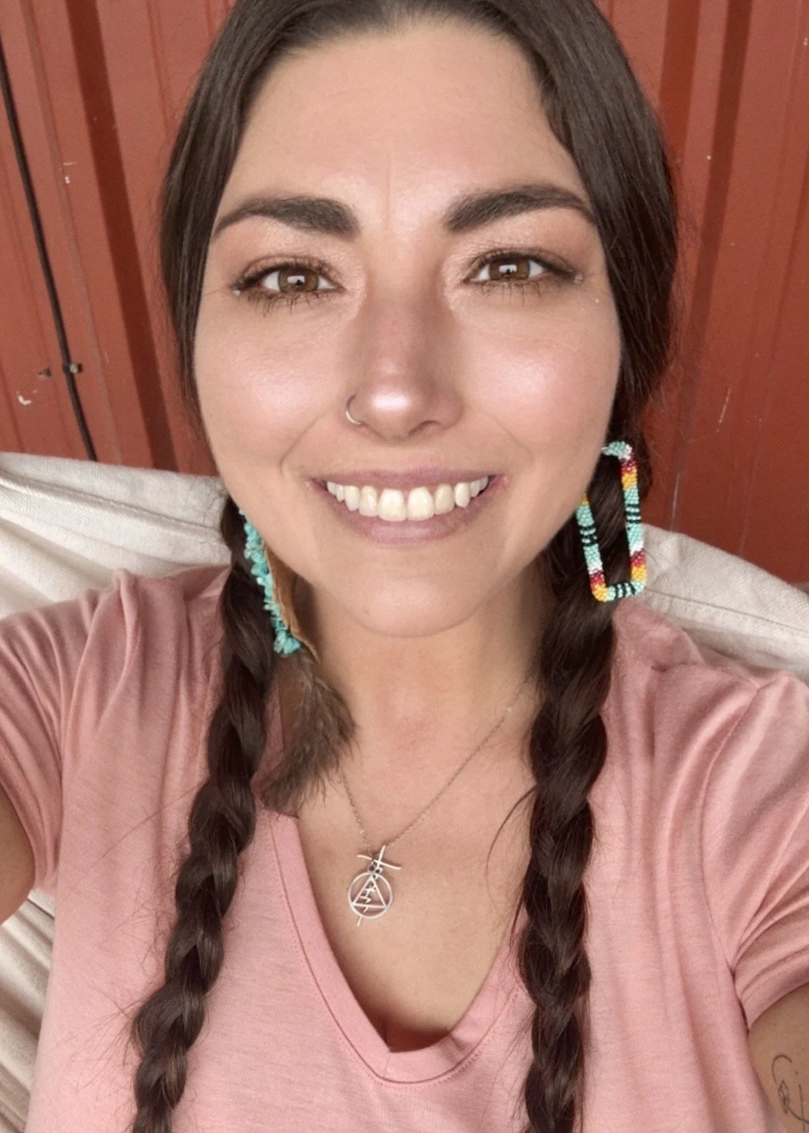 In Anishinaabemowin this means “Hello, I am called D’Lynda. I am an Odawa woman. My spirit first sounded, and I was raised in Fort Worth, Texas. Now, I live in Denton, Texas. I am descended from Standing Stone Kiogima, through my grandfather – Irvin Crossett; these are my ancestors.”